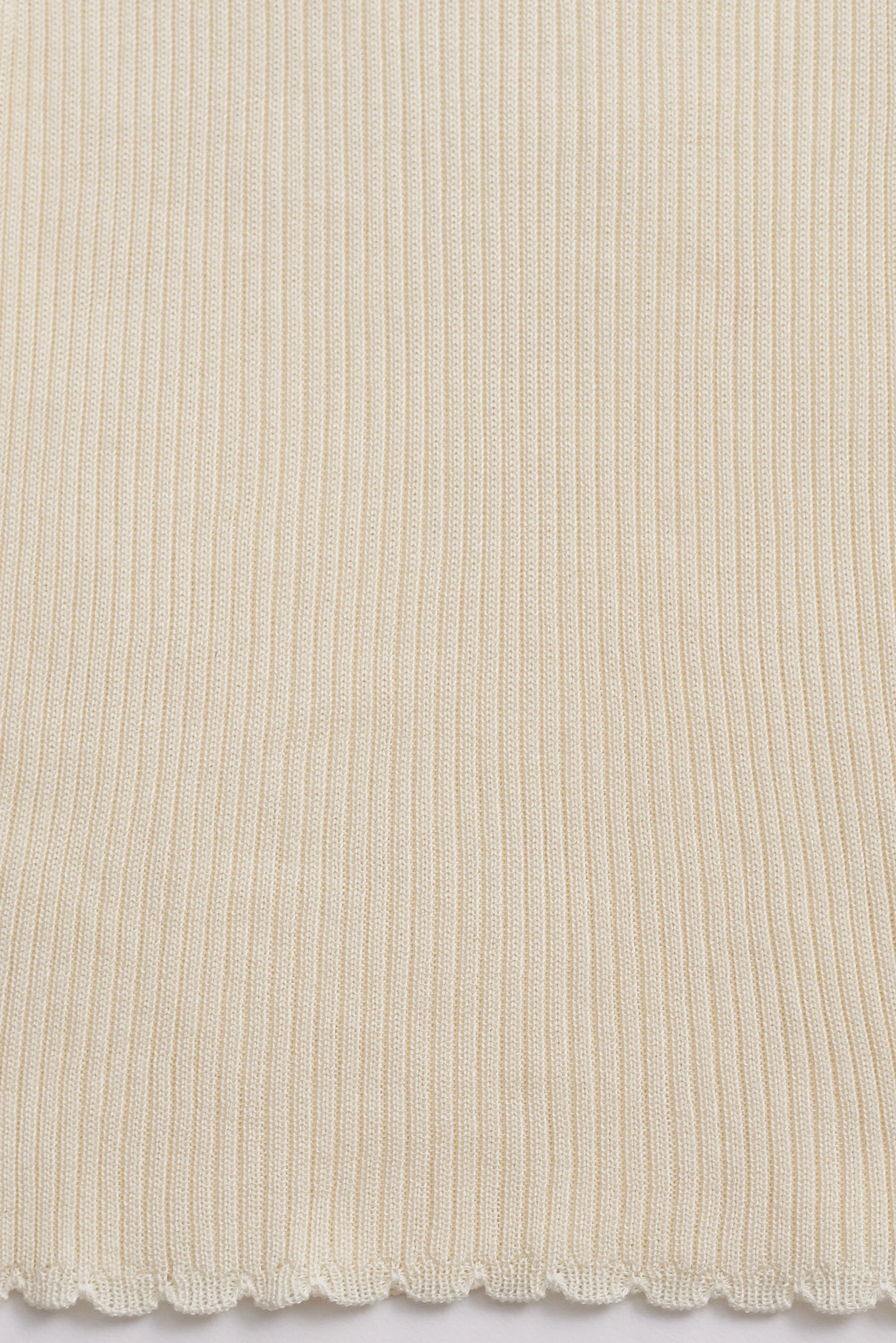 Top is knitted with a hightwisted tencel yarn, ensuring ultimate elasticity and comfort. the yarn has a tint of shine, giving an exclusive look to the color.