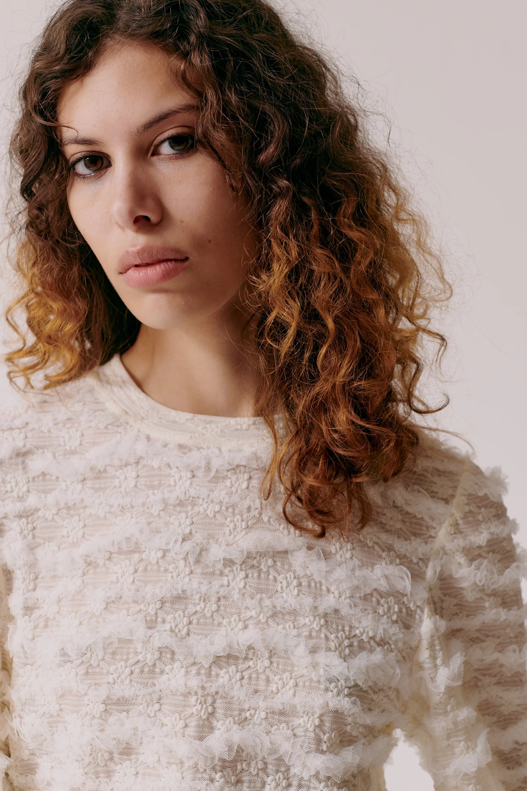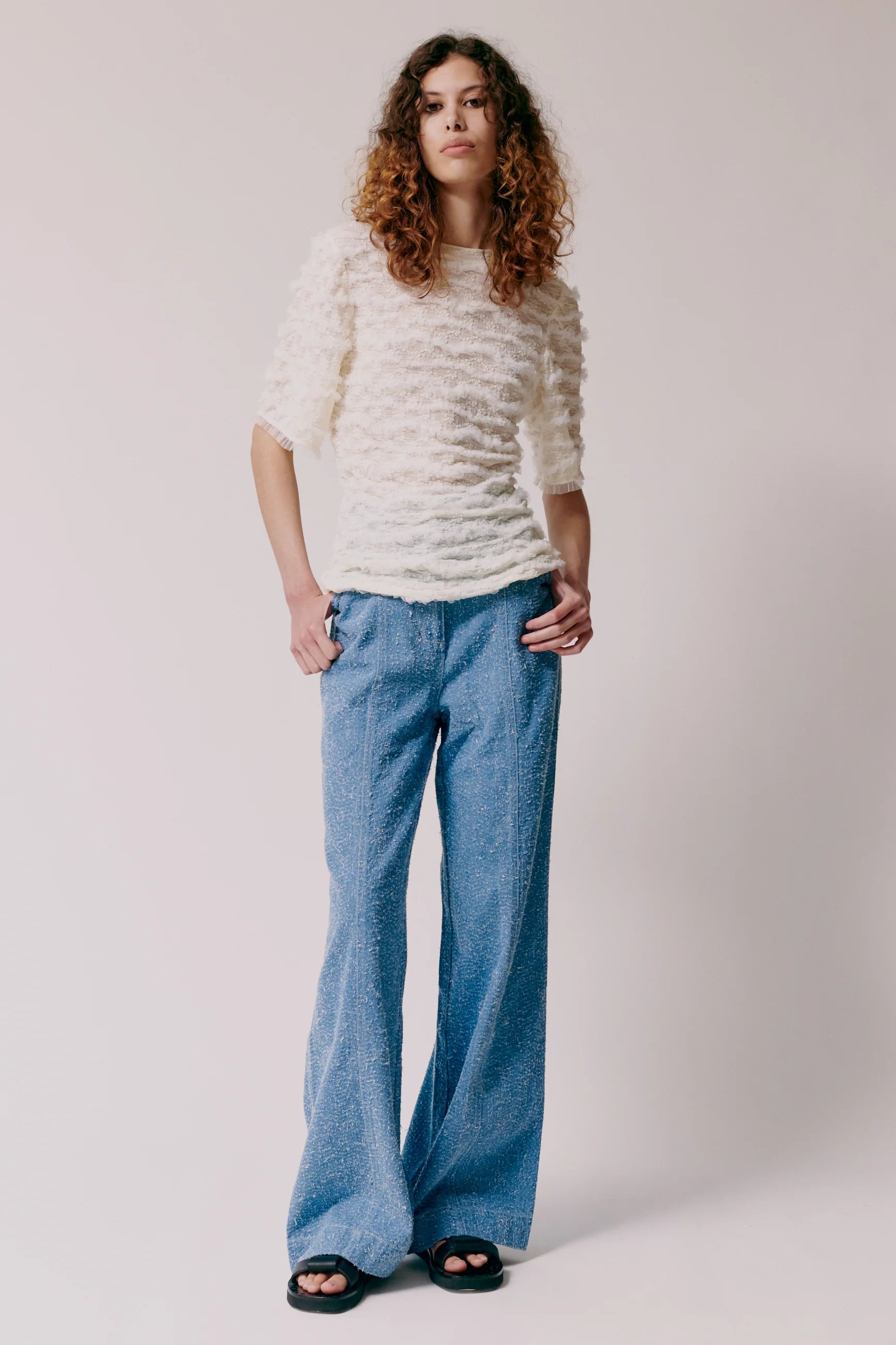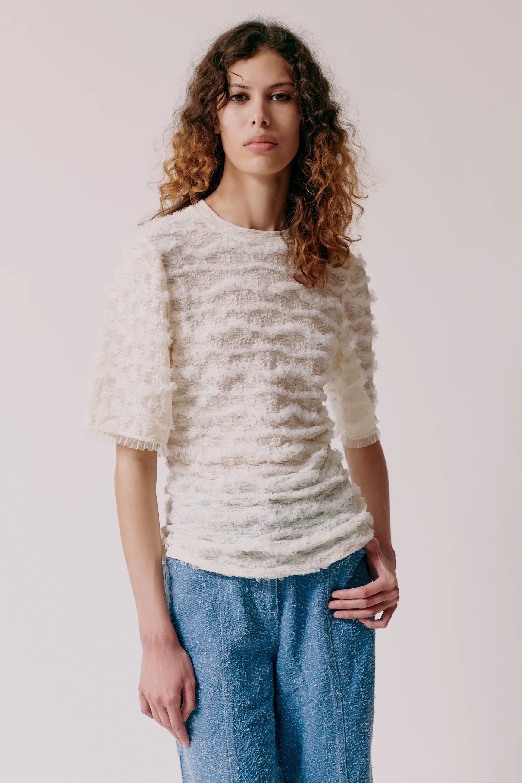 Pammy T-shirt in sheer textured fabric with ruffle details