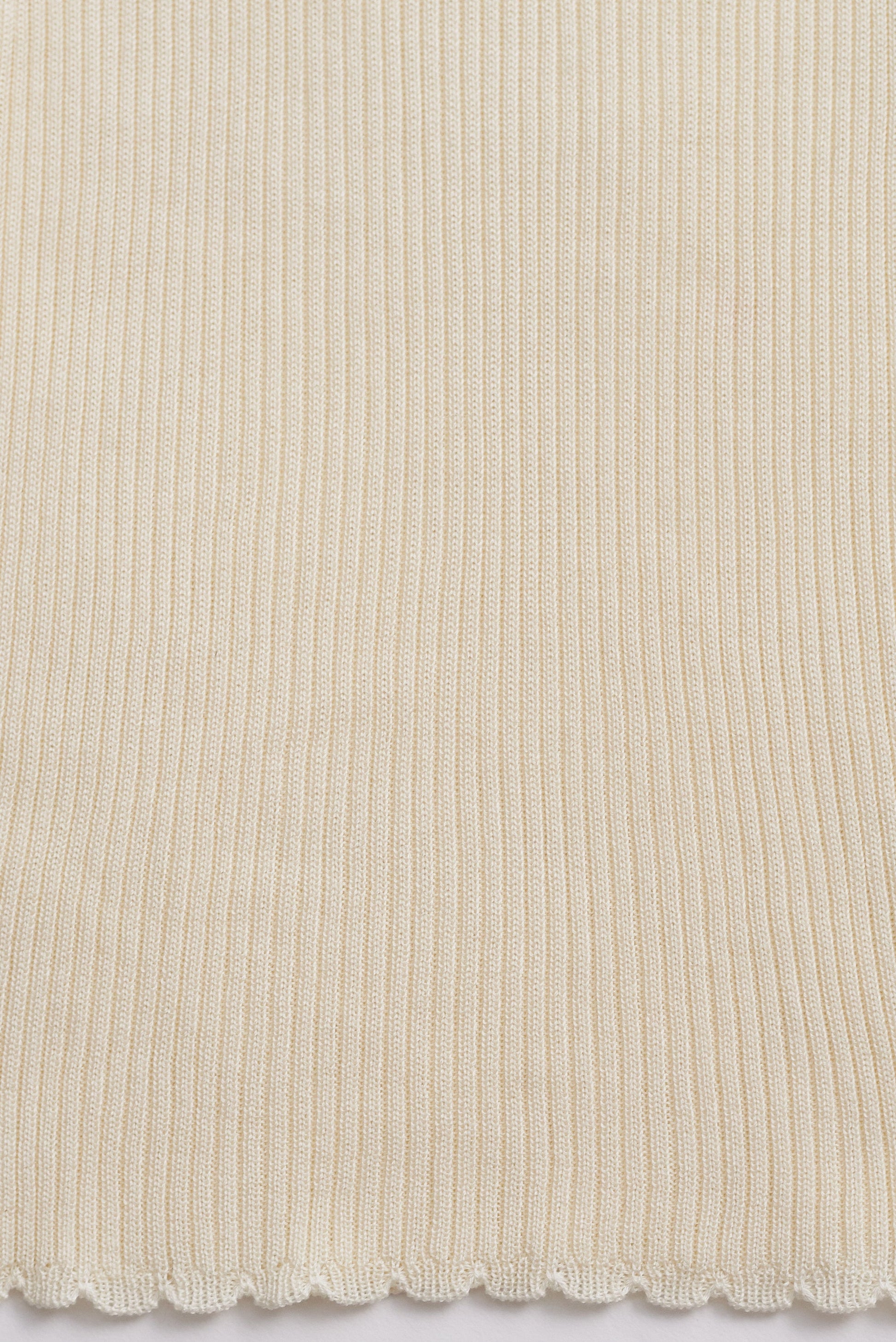 Top is knitted with a hightwisted tencel yarn, ensuring ultimate elasticity and comfort. the yarn has a tint of shine, giving an exclusive look to the color.